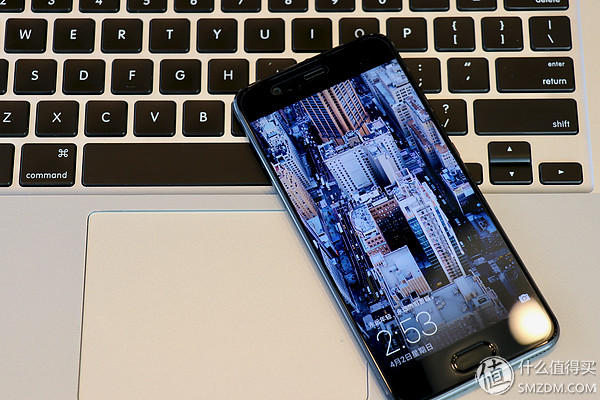 整机在正面还算简介,因为笔者拿到的是磨砂黑版,光线距离传感器还没有显露出来,但是前置摄像头周围没有做镀膜处理,看起来略显廉价。手机下方只有一颗腰圆 home 键,不像是 mate9 pro 还有左右两颗虚拟按键,P10 只能通过一颗按键来实现返回、桌面、呼出后台,体验稍后会谈到。